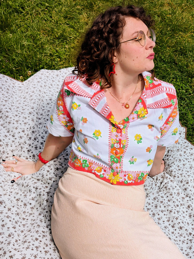Églantine, c'est la chemise qui réinvente l'esprit seventies. Vintage et éco-responsable, avec son col pointu inspiré des années 70, ses manches courtes et sa coupe droite légèrement raccourcie, elle traverse les époques sans effort.