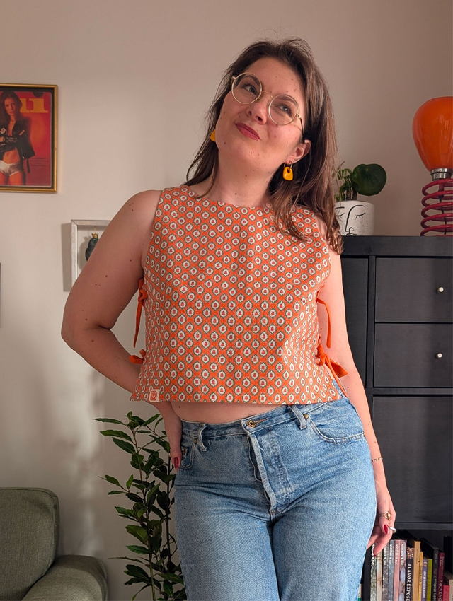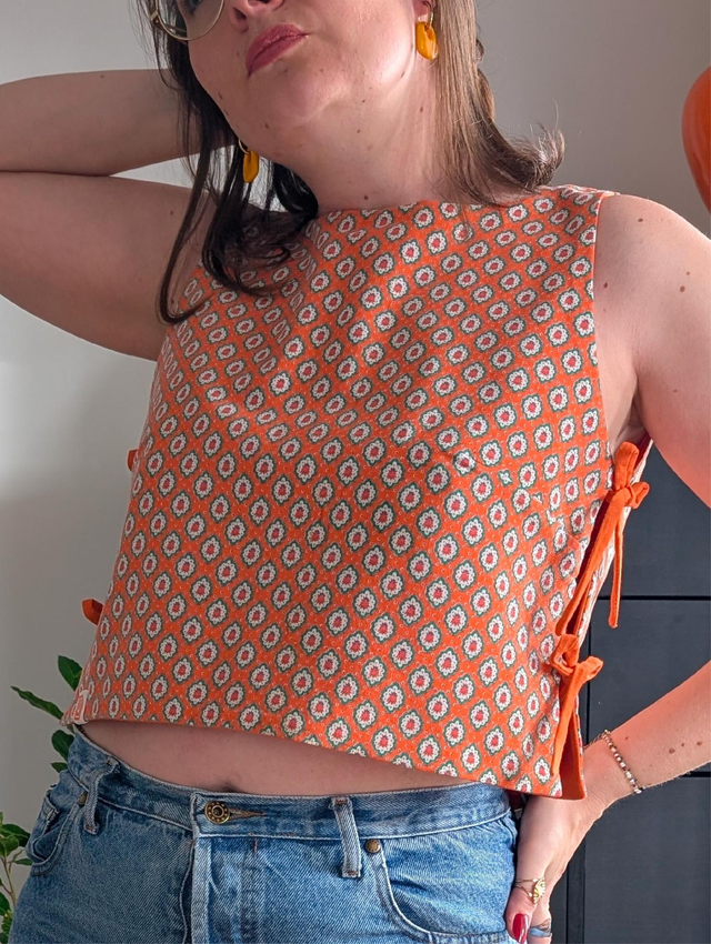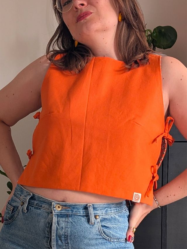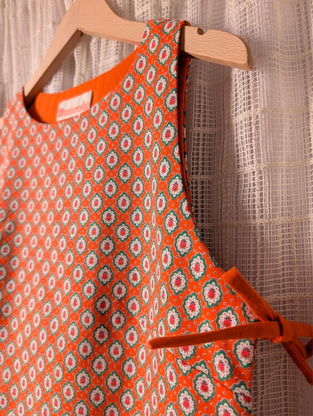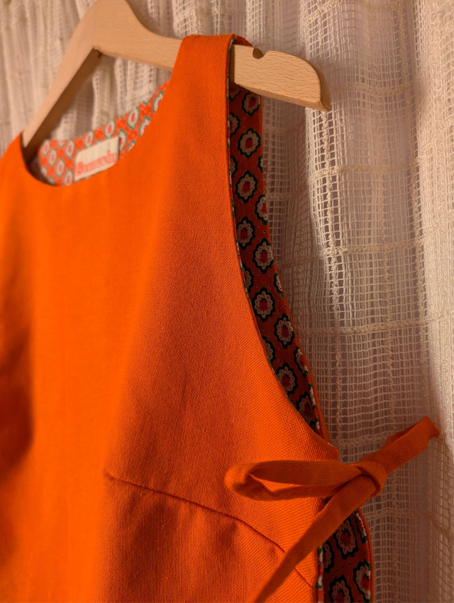 Réversible et unique : un côté orange uni éclatant et solaire, l'autre en tissu provençal vintage orange, chaleureux et intemporel. Deux style, une seule pièces à adopter !
